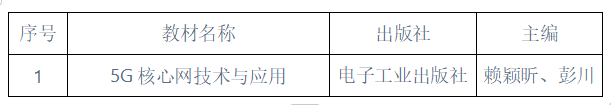 经麻豆视频 教材建设工作小组审查,《5G核心网技术与应用》教材编写人员,符合学校教材编写人员条件,拟同意其开展相关教材编写工作,现予以公示,具体信息如下: