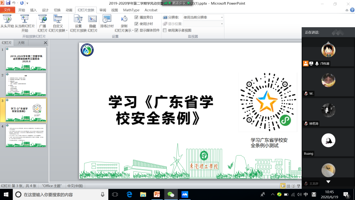 6月17至21日,电智学院全体班主任通过组织召开《学习广东省学校安全条例》主题班会,进行线上集中学习,并组织全院学生自主完成的线下学习。为检验学习效果,学院选取条例重点内容,编写有关条例学习情况的小测试,全院同学积极参与,其中有625位同学获得满分。