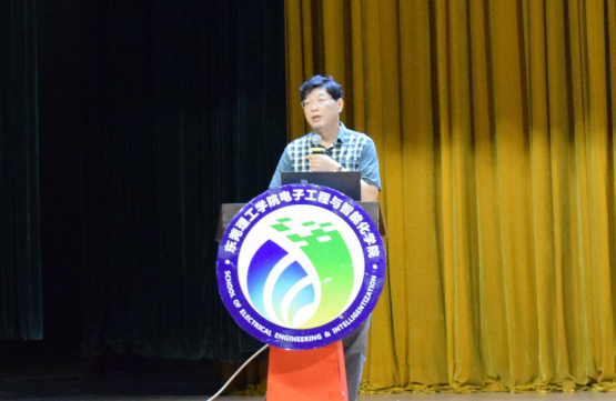 随后,活动进入第二部分——新生见面会环节。电智学院党委书记邓成良教授就学院情况进行介绍,他表达了对新生的欢迎,同时也针对当代青年大学生的特点对新生提出了要求。