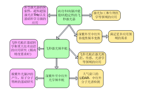 本所主要从事深紫外至中红外超短脉冲激光技术及其应用、飞秒光学频率梳技术及其应用、超快非线性光学和量子光学中的若干问题、新型光电材料及光场调控器件在激光系统、精密传感与测量中的应用等方面的科学研究与产学研转换。