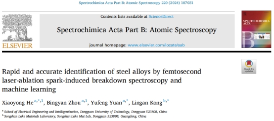 电智学院何小勇博士在钢合金元素分析领域先后发表了两篇高水平论文。第一篇论文提出了基于飞秒激光烧蚀火花诱导击穿光谱与机器学习算法的钢合金元素定量分析研究,发表在:《Journal of Analytical Atomic Spectrometry》(影响因子:3.1,中科院1区),题为以“Accurate prediction analysis of steel alloy elements by femtosecond laser-ablation spark-induced breakdown spectroscopy and out-of-bag random forest regression”。第二篇论文将fs-LA-SIBS技术与随机森林(RF)模型结合,实现了快速鉴别钢合金样品的种类,该研究发表在《Spectrochimica Acta Part B-Atomic Spectroscopy》(影响因子:3.2,中科院1区)题为以“Rapid and accurate identification of steel alloys by femtosecond laser-ablation spark-induced breakdown spectroscopy and machine learning”。两篇论文的第一作者和通讯作者为何小勇博士。