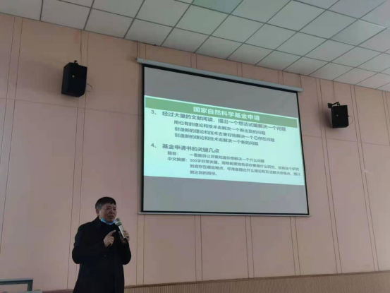 会上,孙院长从评审专家的角度,结合历年国家自然科学基金的评审要点,详细介绍基金申报内容提炼以及申请书撰写技巧,从研究方法、研究路线、可行性分析及特色与创新之处等四个关键点进行剖析和讲解,为大家理清写作思路,提高申报成功几率。