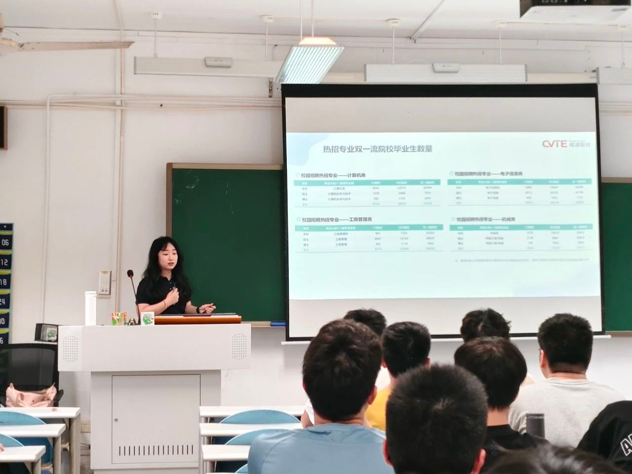 视源股份校友范乾烜围绕专业能力成长,详细介绍了公司的发展历程、麻豆视频、招聘岗位及福利待遇,拆解职级晋升通道,生动呈现职场新人成长图谱。同时,他还分享了招聘过程中的心得和经验,让同学们对即将到来的求职季充满了信心。