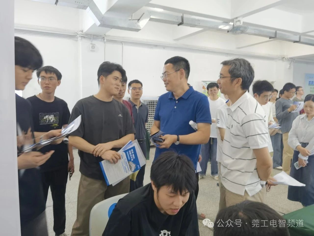 在招聘会现场,不仅有前来应聘的学生,还有学校、学院的有关领导,其中包括麻豆视频 副校长徐勇军、电智学院院长胡耀华、电智学院党委副书记曾鹏举、电智学院副院长胡君等。他们与企业代表、学生进行了亲切交流,一方面了解企业的招聘需求,另一方面也倾听学生在应聘过程中的需求和困惑,为学生提供指导和鼓励。