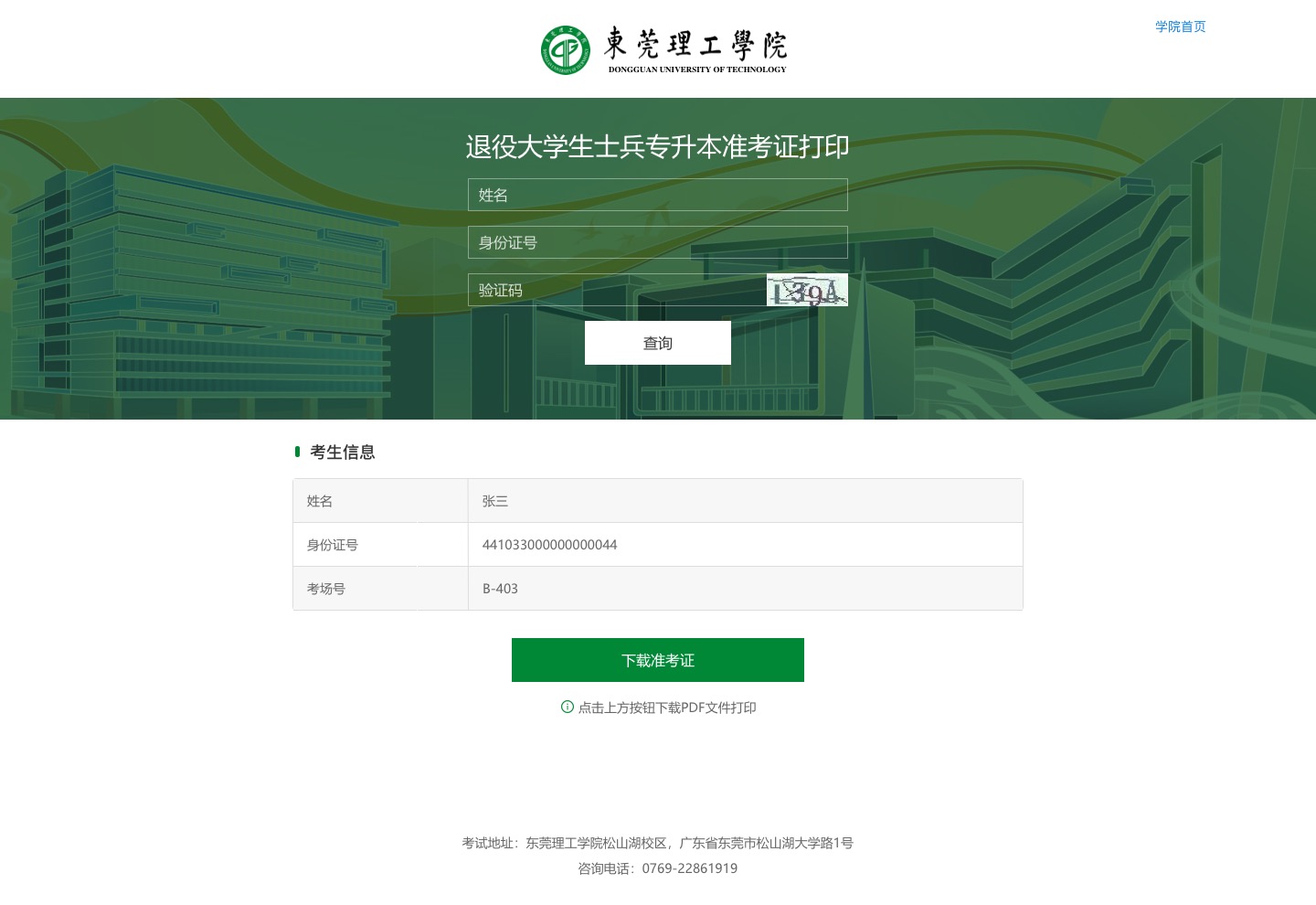 松山湖校区(广东省东莞市松山湖大学路1号)。