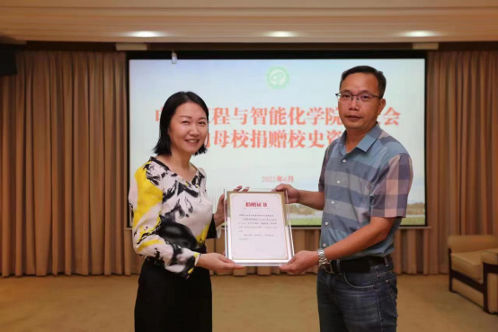 电智学院校友会向母校捐赠史料纪念品