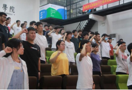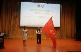 学生代表刘雅雯带领本期“青马工程”培训学员庄严宣誓:“学风建设,从我做起,电智青马学员在此宣誓:爱党爱国爱校荣校、树立目标明确规划、尊师重教勤奋学习、锻炼身体积极劳动、诚信立学诚信立身、追求卓越不断创新,以实际行动为形成优良学风、优良校风贡献力量!