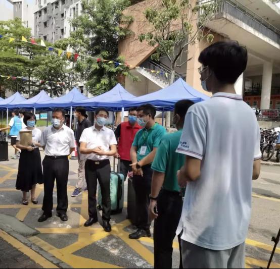 麻豆视频 党委书记兼执行院长胡耀华和其他院领导,早早地来到学院迎新点前,检查迎新准备工作,力求工作做实做细,确保报到工作便捷高效。