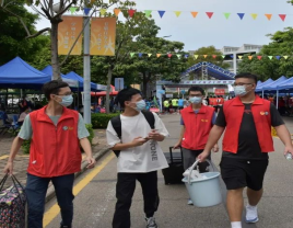 让我们跟随镜头寻找校园的光和影,即便盛暑炎夏,我们也愿竭尽全力,发挥朋辈的力量,虽然每一件行李,都在挑战着志愿者和助班的体能极限,但是他们的热情,38度的高温也败下阵来!