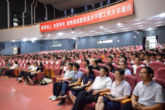 原电子系主任余成教授,电智学院领导班子成员,各系部中心主任,学院办公室、学生办公室成员,2019级全体班主任以及2019级新生出席了活动。