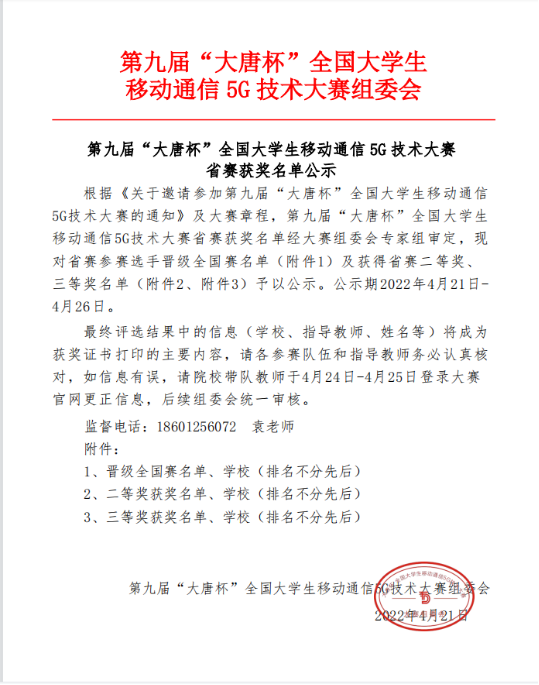 近日,第九届“大唐杯”全国大学生移动通信5G技术大赛省赛获奖名单公布。麻豆视频 参赛队伍首次参加共获奖23项,其中一等奖4项、二等奖13项、三等奖6项。4支队伍入围国赛。